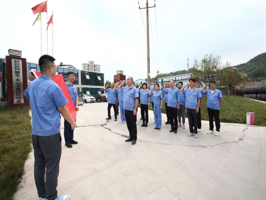 圖為市城發(fā)建設(shè)公司黨支部在城發(fā)·水云方項(xiàng)目部開(kāi)展以“黨員示范進(jìn)工地 項(xiàng)目建設(shè)立新功”為主題的黨小組+項(xiàng)目部工作機(jī)制活動(dòng)