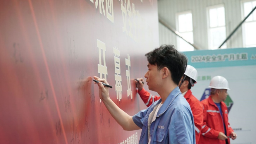 啟動儀式最后,經(jīng)開投路面材料公司、文鼎公司職工代表分別作安全宣誓,全體參會人員依次在”人人講安全、個(gè)會應(yīng)急"主題展板上簽字。