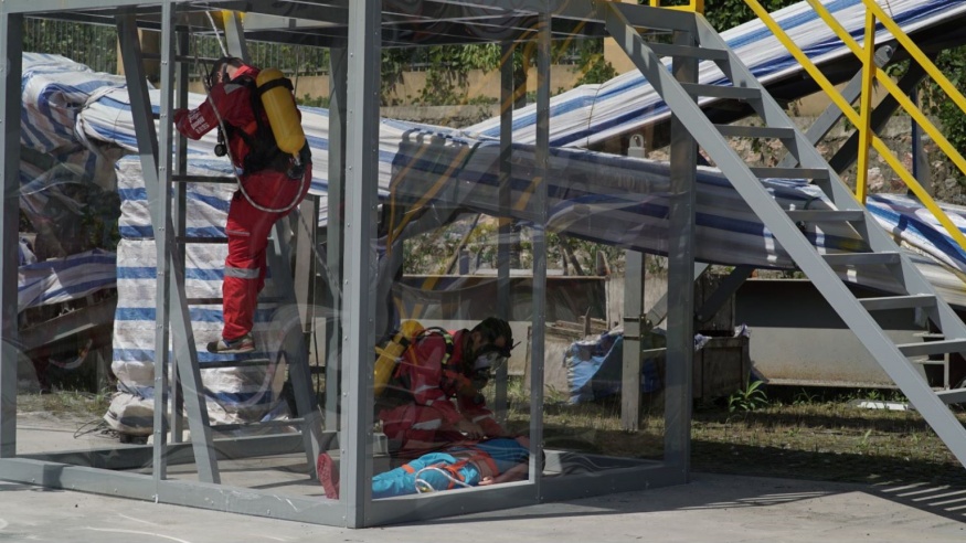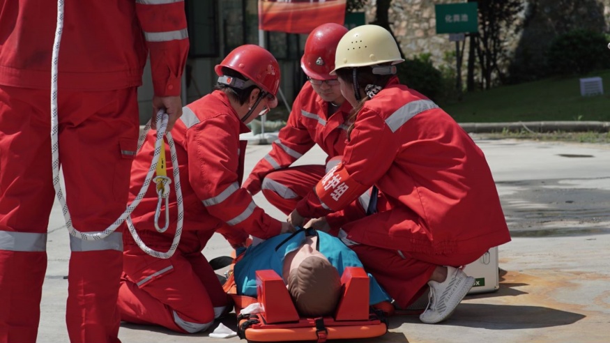 啟動儀式后,黃石市經(jīng)開投路面材料公司開展應(yīng)急演練活動演練以模擬有限空間作業(yè)環(huán)境下人員缺氧窒息暈倒為背景。事故發(fā)生后,安全保衛(wèi)組、事故救援組、醫(yī)療救護(hù)組、后勤保障組等各應(yīng)急小組迅速趕赴現(xiàn)場,采取有效措施進(jìn)行事故應(yīng)急救援。演練全程用時(shí)僅15分鐘,演練過程緊張有序,程序規(guī)范、場景真實(shí)、反應(yīng)快速、效果良好。應(yīng)急演練活動進(jìn)一步提升了建工集團(tuán)安全員處置突發(fā)事件的水平和應(yīng)急處置能力,為完善突發(fā)事件應(yīng)急預(yù)案提供了寶貴的實(shí)踐經(jīng)驗(yàn)。