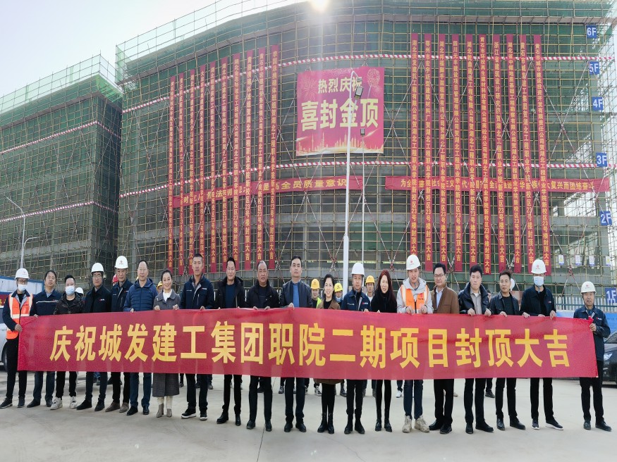 2023年1月9日上午,在湖北工程職業(yè)學(xué)院新校區(qū)(二期)生活區(qū)宿舍樓項(xiàng)目現(xiàn)場(chǎng)舉行主體結(jié)構(gòu)封頂儀式。城發(fā)建工集團(tuán)黨總支書記、董事長(zhǎng)潘明亮,城發(fā)建工集團(tuán)黨總支委員、副總經(jīng)理洪登峰出席活動(dòng),城發(fā)建設(shè)公司、城發(fā)渣土公司、城發(fā)商砼公司相關(guān)負(fù)責(zé)同志,施工單位、監(jiān)理單位、咨詢?cè)O(shè)計(jì)單位等參建各方代表參加項(xiàng)目主體結(jié)構(gòu)封頂儀式。